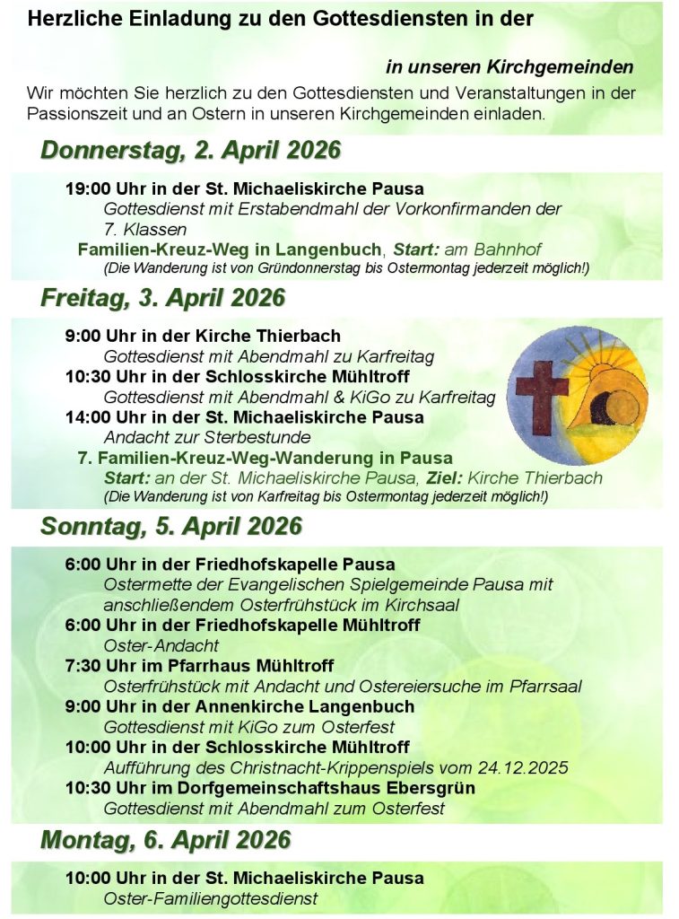 Osterwoche Gottesdienste Pausa-Mühltroff 2026